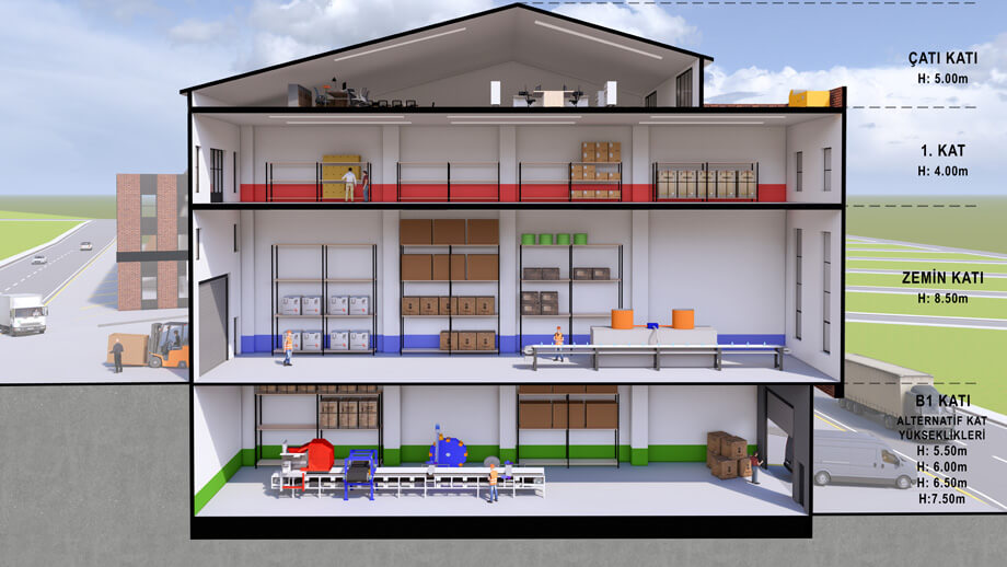 Yüksek enerji altyapısı, her sektöre uygun ağır tonaj taşıma kapasitesi, benzersiz kat yükseklikleri…